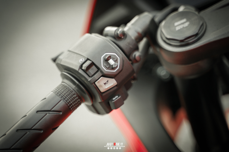 Quick Shifter ไฟฟ้า แบบ 2ways ปรับระดับได้สามระดับ Soft, Medium, Hard คือทั้งขึ้นและลดเกียร์ ถูกติดตั้งมาให้ด้วย เพื่อมาทำงานร่วมกับ E-Clutch ให้การทำงานของทั้งระบบสัมพันธ์กันโดยสมบูรณ์นั่นเอง