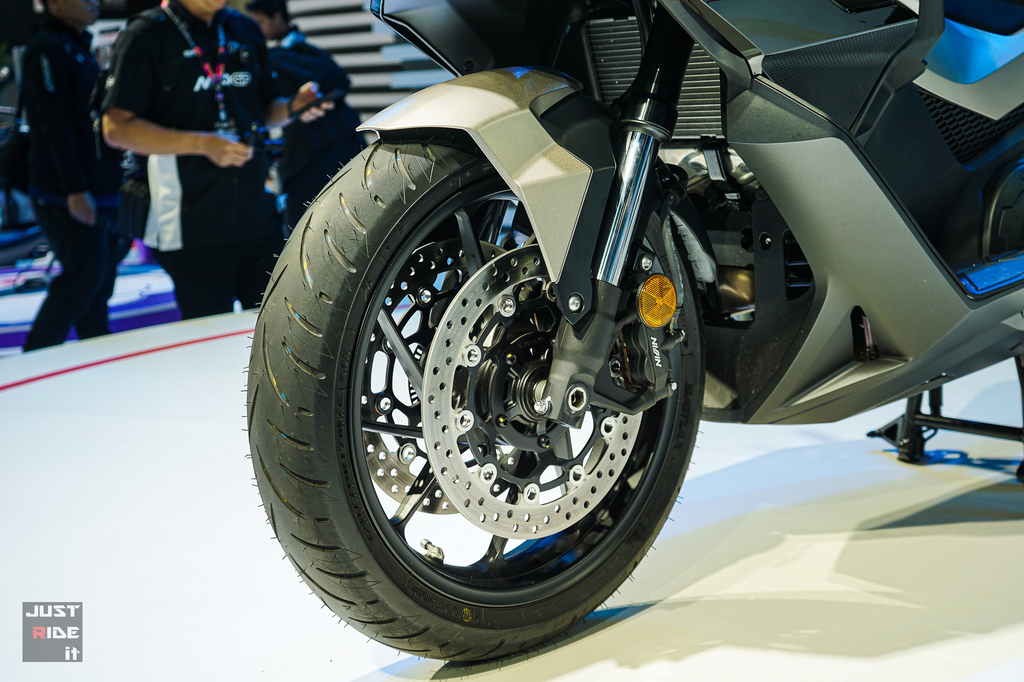 ล้อหน้าขนาด 17 นิ้ว และล้อหลังขนาด 15 นิ้ว พร้อมโช้กหน้าหัวกลับขนาด 41 มม. ที่ช่วยเพิ่มความนุ่มนวลและมอบการทรงตัวที่มั่นคง