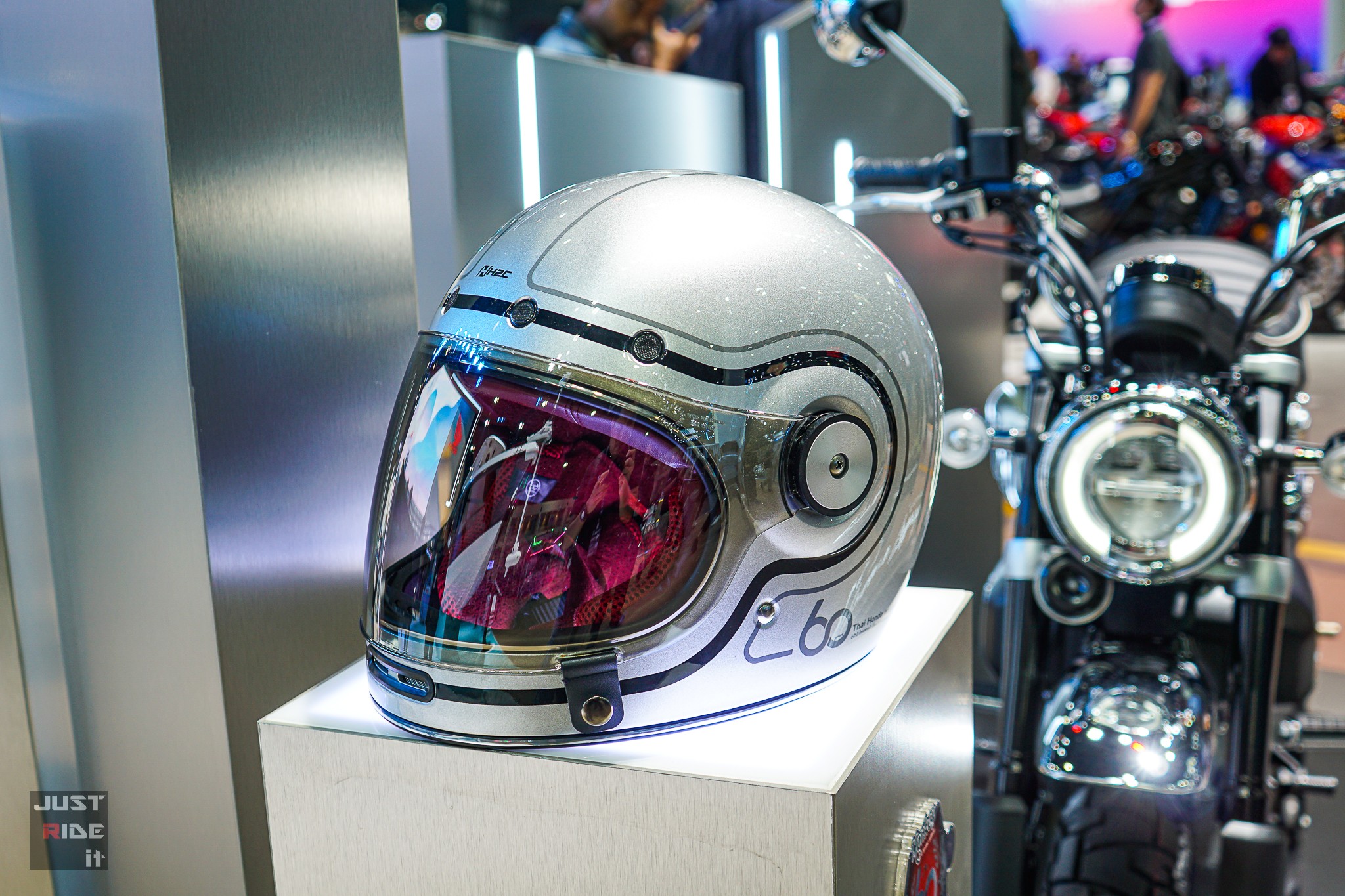 พิเศษ! มาพร้อมกับหมวกกันน็อกสีเงินเมทัลลิค ที่เข้าเซ็ตกับตัวรถได้อย่างลงตัว