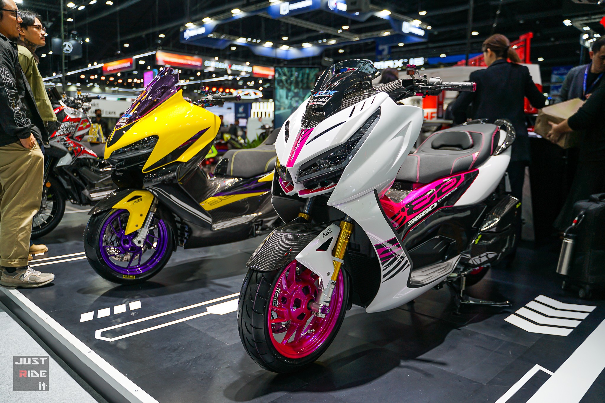 รถคัสตอมตกแต่งพิเศษ เพิ่มความหล่อไปอีกขั้น ทั้งในรุ่น 368D และ 368K จากสำนักแต่งชื่อดัง Jack Shop ที่หยิบเอาดีเอ็นเอของสกู๊ตเตอร์พรีเมียมมาขยายต่อในสไตล์สปอร์ต สายซิ่ง ด้วยสีสันจัดจ้าน ของแต่งเทพแบบจัดเต็ม!