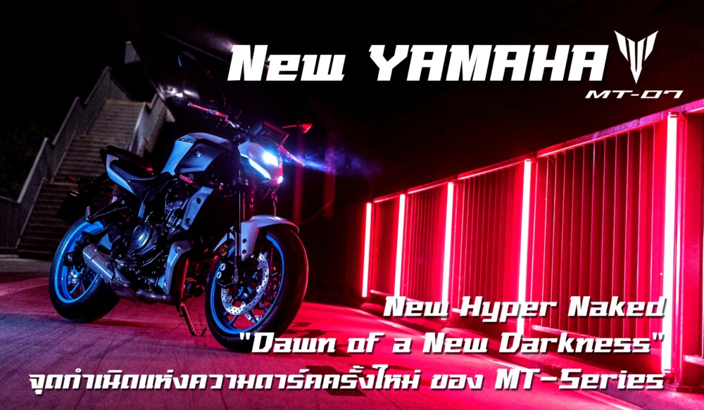 “ยามาฮ่า ไรเดอร์สคลับ” (YAMAHA Riders’ club) ผู้จำหน่ายรถจักรยานยนต์ยามาฮ่าบิ๊กไบค์ในเมืองไทย ภายใต้การบริหารงานโดย บริษัท ไทยยามาฮ่ามอเตอร์ จำกัด พร้อมส่งมอบความเร้าใจ และความคล่องตัวในการขับขี่ จุดกำเนิดแห่งความดาร์คครั้งใหม่ ด้วยการเปิดตัว New YAMAHA MT-07 และ New YAMAHA MT-07 Y-AMT สุดยอด Hyper Naked ที่ถูกพัฒนาได้อย่างลงตัวกับ Generation ที่ 4 ของรุ่นนี้ โดยได้รับการออกแบบภายใต้แนวคิด Natural Simplicity for everyone ที่เรียบง่าย และลงตัวยิ่งขึ้น รูปทรง และสัดส่วนตัวเครื่องกระชับ เพื่อให้ผู้ขับขี่ได้สนุกกับการขับขี่แบบเร้าใจแห่งรัตติกาล