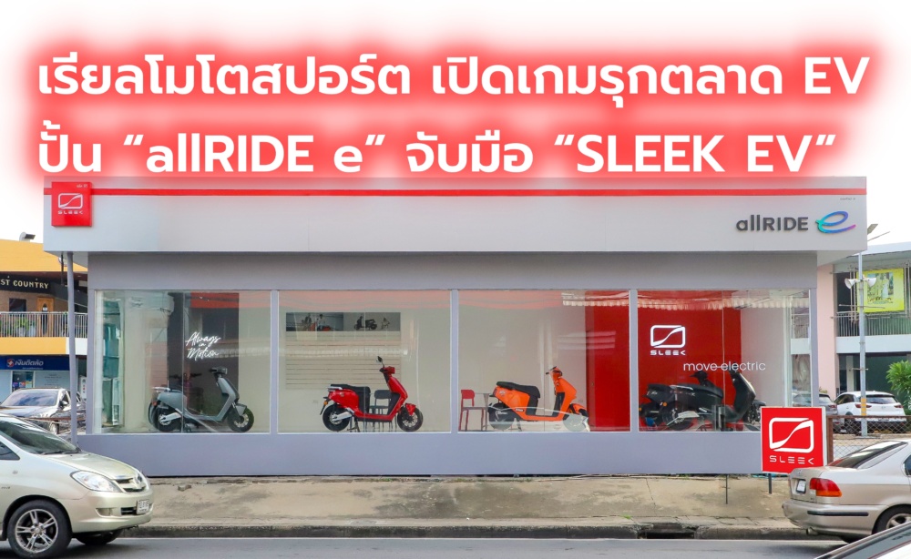 เรียล โมโตสปอร์ต เปิดเกมรุกตลาด EV ปั้น “allRIDE e” จับมือ “SLEEK EV” เปิดแฟลกชิปสโตร์แห่งแรกในกรุงเทพฯ ย่านวัชรพล อัดโปรแรง! ออกรถ 0 บาท ลดสูงสุด 20,000 บาท